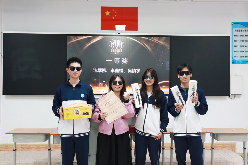 一等奖:1班沈翠柳、李鑫福、吴镇宇(助农故事创作赛道),奖品为刘向明草粿+刘向明芒果干+手机支架;